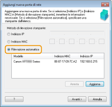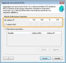 Si noti che al driver della stampante viene assegnato un indirizzo IP differente. Per utilizzare l'indirizzo IP della macchina, configurare le impostazioni della porta sul computer dopo l'installazione.