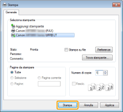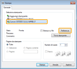 Per informazioni sulle funzioni di stampa disponibili, visualizzare la guida in linea per conoscere le impostazioni che è possibile configurare in ciascuna scheda (vedere "Visualizzazione della Guida in linea").