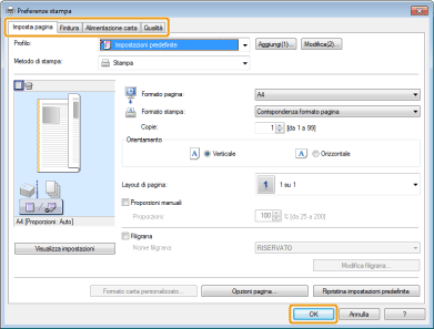 La visualizzazione può essere diversa a seconda del sistema operativo, nonché del tipo e della versione del driver per stampante.