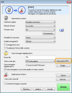 Specificare le impostazioni richieste e fare clic su [Impostazioni PDF].