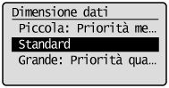 La quantità di memoria richiesta e la qualità di scansione risultante sono più o meno a metà tra <Piccola: Priorità memoria> e <Grande: Priorità qualità immagine>.