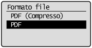 Salva il file in formato PDF. Le immagini a colori, quali le foto o le illustrazioni, vengono compresse maggiormente rispetto a <PDF> per ridurre la dimensione del file.