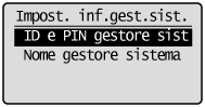 Selezionare <ID e PIN gestore sistema> utilizzando [