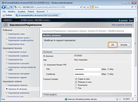 Selezionare la casella di controllo [Impostare/Variare PIN].