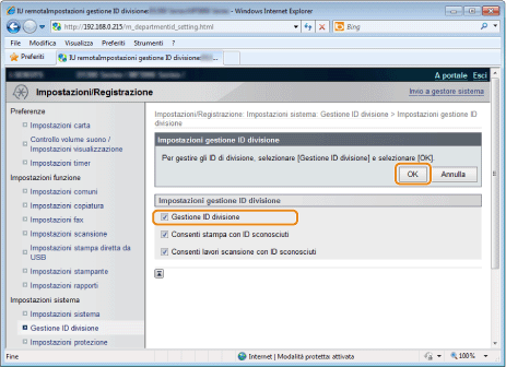 Selezionare la casella di controllo [Gestione ID divisione] e scegliere [OK].