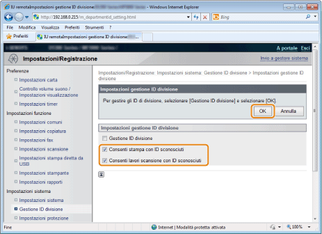 I lavori di stampa non vengono ricevuti da un driver di stampante in cui non è stato registrato l'ID della divisione.