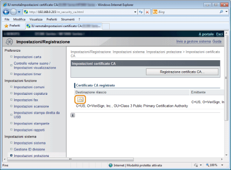 [Impostazioni protezione] -> Fare clic su [Impostazioni chiave e certificato] o [Impostazioni certificato CA].