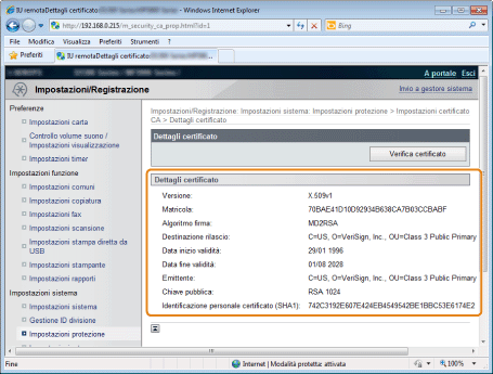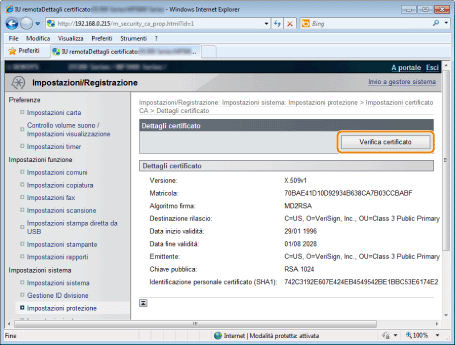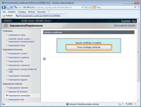 Dopo aver verificato i risultati della verifica, fare clic su [Torna a Dettagli certificato].