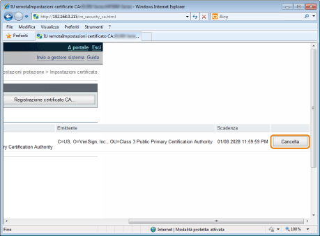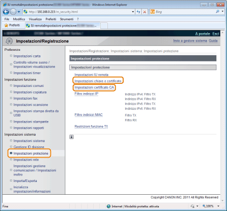Inizializzazione di chiavi e certificatiÈ possibile riportare chiavi, certificati e certificati CA alle rispettive impostazioni predefinite.