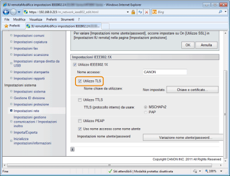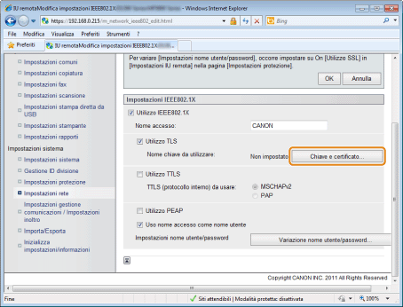 È possibile specificare le informazioni di autenticazione per utilizzare il protocollo TLS durante l'autenticazione IEEE802.1X.