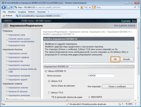 Fare clic su [Impostazioni rete] -> [Impostazioni IEEE802.1X].