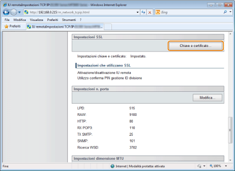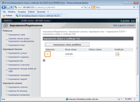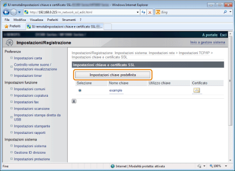 Fare clic su [Chiave e certificato] in [Impostazioni SSL].