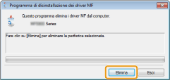Se non si ha bisogno di questo software installato sul computer, attenersi alle istruzioni della procedura seguente per disinstallare il driver della stampante, il driver del fax, il driver dello scanner o MF Toolbox.