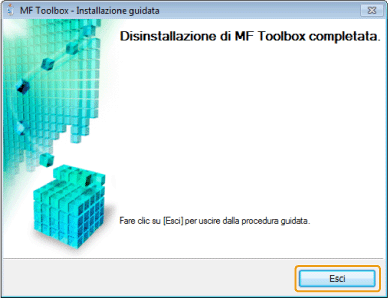 Dal menu Start, scegliere [Programmi]/[Tutti i programmi] -> [Canon] -> [MF Toolbox 4.9] -> [Disinstallazione di Toolbox].