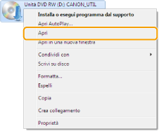 Fare clic con il pulsante destro del mouse sull'icona del CD-ROM e scegliere [Apri] dal menu di scelta rapida.