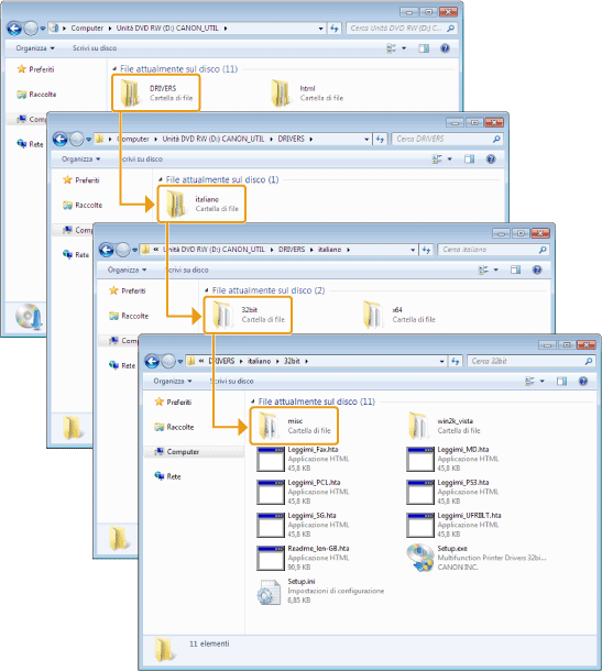 Fare doppio clic sulle cartelle [DRIVERS], [italiano] e [32bit] per aprire la cartella [misc].