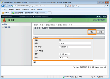 ] 或 [ ] 选择 <将新接收方注册至地址簿>,然后按 [OK]。![]()