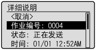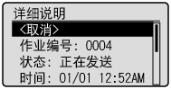 ] 选择 <是>,然后按 [OK]。![]() 发送作业即被取消。对于多路发送,至所有接收方的传真传送都会被取消。
