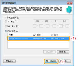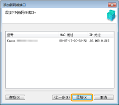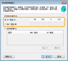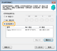 请注意,为安装的打印机驱动程序分配了不同的 IP 地址。要使用本机的 IP 地址,安装后请在计算机上配置端口设置。