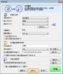 将扫描文档并显示在已注册的应用程序中。 每个按钮会出现一个对话框。