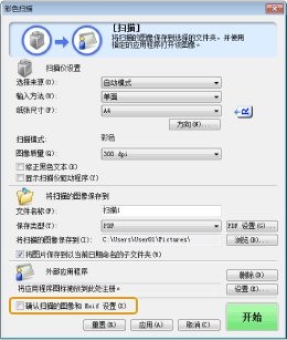 单击 [开始] 时,将出现 [ScanGear MF] 对话框,您可以在其中进行高级扫描设置。