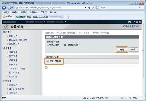 选中 [使用LPD打印] 复选框。 不使用 LPD 打印时