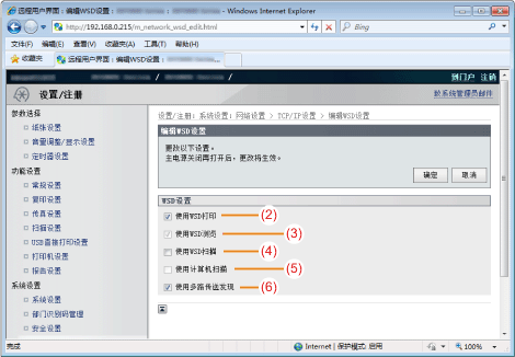 选中 [使用WSD浏览] 复选框以获得关于本机使用 WSD 端口的信息。(一旦选中 [使用WSD打印] 复选框后,将无法清除。)