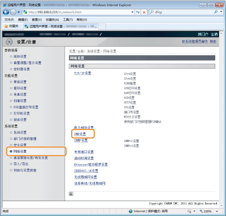 单击 [网络设置] -> [SMB设置]。