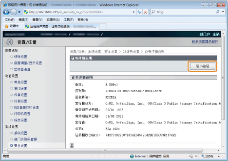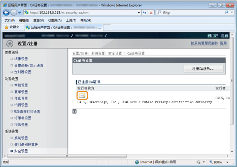 [安全设置] -> 单击 [密钥和证书设置] 或 [CA证书设置]。