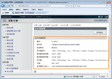 您可以检查所保存密钥和证书以及 CA 证书的详细信息,并验证其到期日期和/或签名。