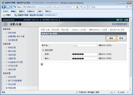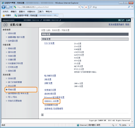 单击 [网络设置] -> [IEEE802.1X设置]。