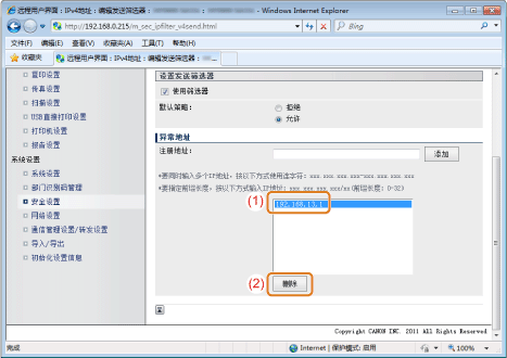 只允许从在 [异常地址] 中指定其地址的计算机进行访问。