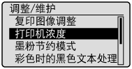 将浓度调整到最适合复印、打印接收的传真、从存储介质打印或打印报告的级别。