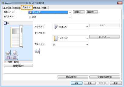 根据纸张类型(纹理粗糙的纸张,尤其是 16K 尺寸),输出量可能会下降。发生此情况时,将设置更改为 <打开>。