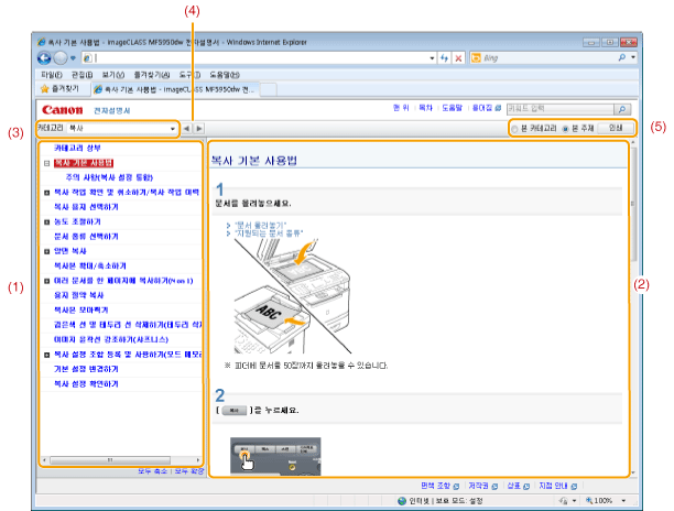 선택한 카테고리의 내용을 보여줍니다. 왼쪽 칸에서 보려는 내용을 클릭하세요. 전체 절이 오른쪽 칸(항목 페이지)에 나타납니다. [