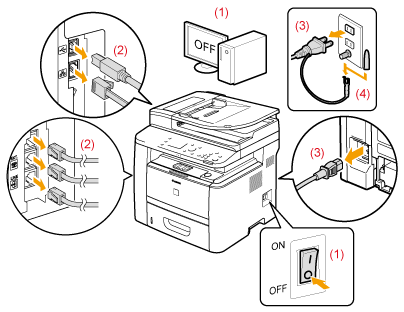 製品内部に入った場合は、直ちに本製品とコンピューターの電源をオフにし(1)、インターフェイスケーブルを接続している場合は、インターフェイスケーブルを抜いてください(2)。そのあと、電源プラグを抜いて(3)、アース線を取り外し(4)、お買い求めの販売店にご連絡ください。 ![]() 本製品を医療用電気機器の近くで使用しないでください。本製品からの電波が医療用機器に影響を及ぼすことがあります。誤動作による事故の原因となります。