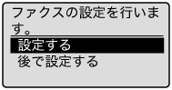 <後で設定する>を選択した場合は、次の操作で「ファクス設定ナビ」を表示して設定・接続を行ってください。