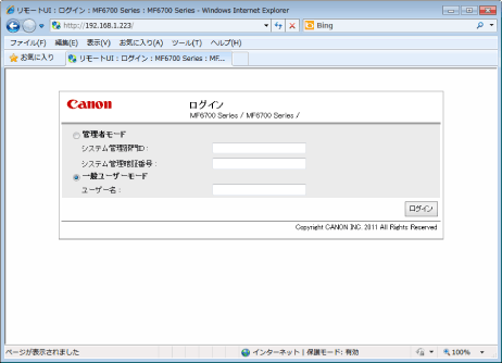 ネットワークに接続されているコンピューターのWebブラウザーを起動します。
