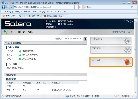 ][ ]で<アドレス帳の編集>を選択して、[OK]を押します。![]()