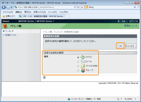 ][ ]で<アドレス帳に新規登録>を選択して、[OK]を押します。![]()