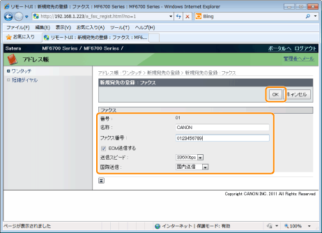 ][ ]で登録する番号を選択して、[OK]を押します。![]() |