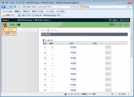 プルダウンリストから[ワンタッチ]または[短縮ダイヤル]を選択して、[表示切替]をクリックします。