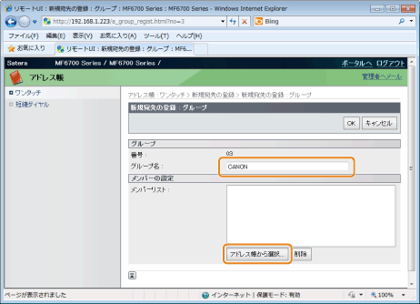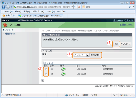 ][ ]で追加する宛先を選択して、[OK]を押します。![]() |