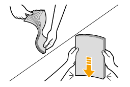 原稿をさばいてから、平らな場所で原稿の端を揃えます。