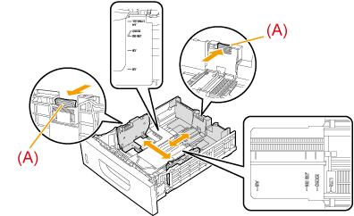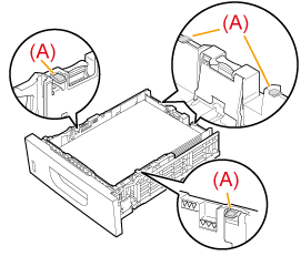 用紙ガイドを用紙の幅に隙間なく合わせるゆるすぎたりきつすぎたりすると、用紙が正しく送られなかったり、紙づまりの原因になります。