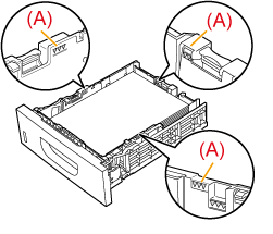 絶対に積載制限マークの線を超えない範囲でセットしてください。積載制限マークの線を超す量の用紙をセットすると、給紙不良の原因になります。
