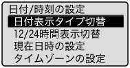 ]で<日付/時刻の設定>を選択して、[OK]を押します。