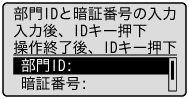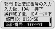 部門別ID管理を設定している場合、登録した部門IDと暗証番号を入力すると本製品が使えるようになります。