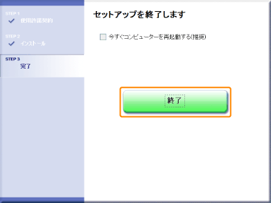 [終了]をクリックします。