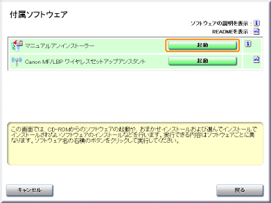 [マニュアルアンインストーラー]の[起動]をクリックします。